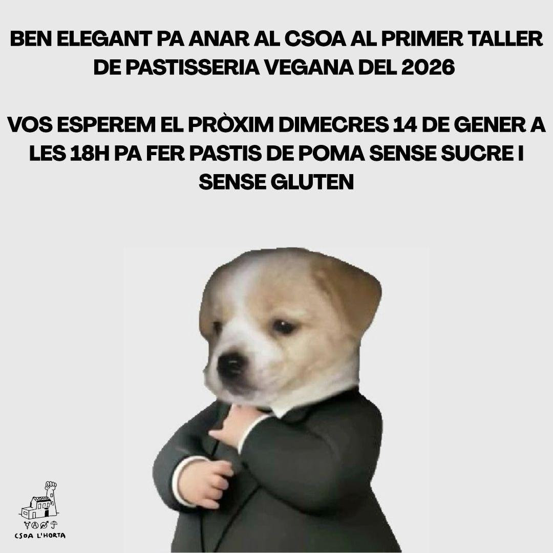 Hortets us volem convidar a una nova kafeta, en aquesta ocasió en solidaritat amb Palestina 🍉 📆 30 de novembre de 2025, a partir de les 11.30h 📌 CSOA l’horta 👉 🥁Comencem amb el clàssic torneig de ping-pong de l’horta, seguit d’un concert de Jam-Ass. 👉🇵🇸 Presentem el projecte ‘Acoge Palestina Campesina’ i dinem un menú palestí vegà 👉🤹♂️ Acabem la jornada, abans que es faça de nit amb Kabaret a càrrec de Jacinto Sifón. Com sempre, tindrem sucs boníssims i menjar vegà lliure de capitalisme. Us esperem 🍀