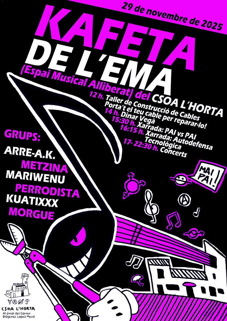 El 29 de novembre vos convidem a la Kafeta de l’Espai musical alliberat del CSOA l’Horta!